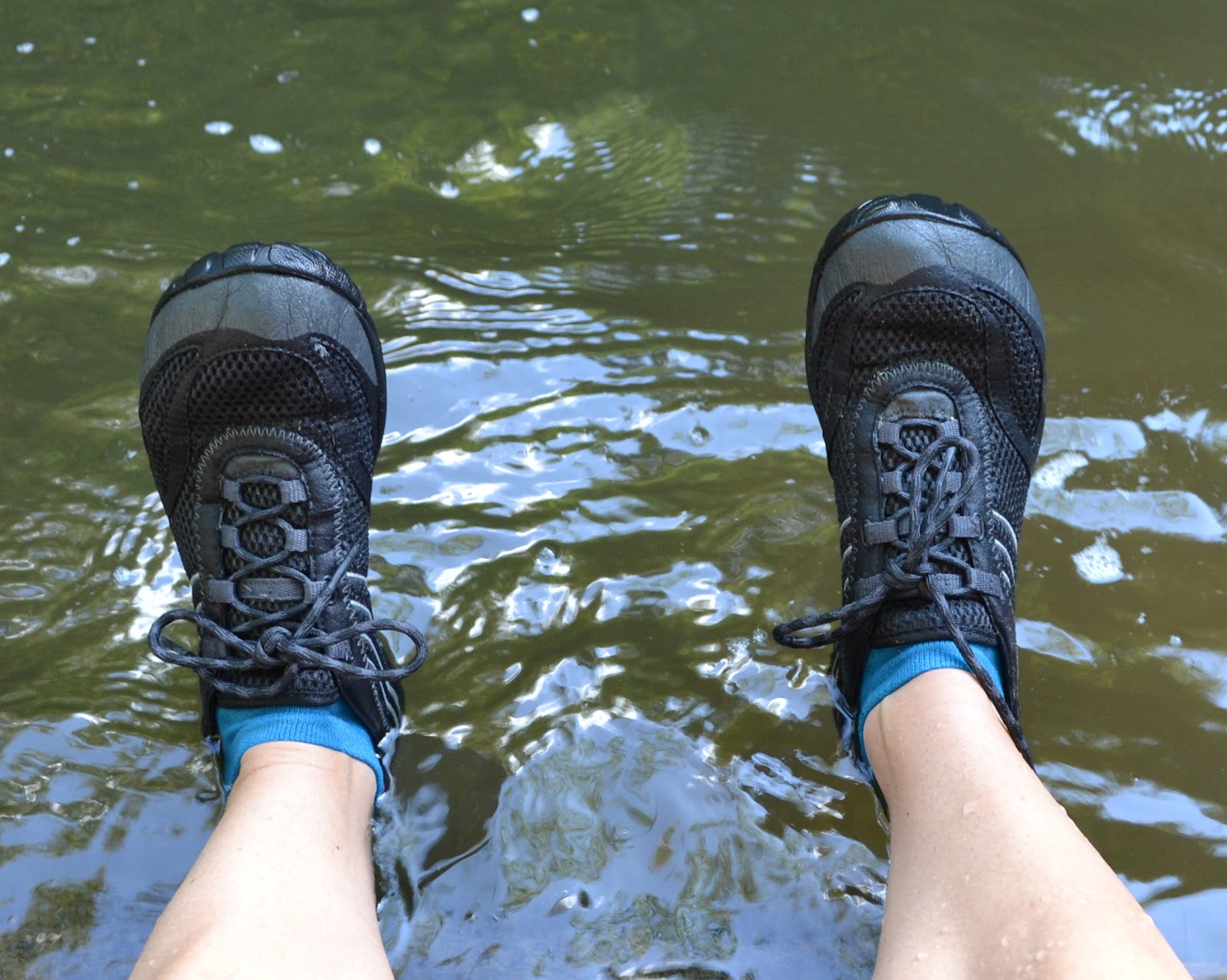 I was camping in the mountains with my family a few weeks ago. We were staying next to a lovely river that was full of crawfish and good for tubing so we spent a lot of time in the water. I mainly served as kid-catcher as they came down river in their inner tubes so they wouldn’t end up in the next town, so I decided I’d make good use of my time. I did this by testing out my newish running shoes for their ability to keep me from falling down and not get weighed down with mud and water at the Tough Mudder. This happened to me at the Warrior Dash and it was both annoying and made running really hard. For that reason, I decided to go with a more minimalist shoe for this Tough Mudder training and found a Vibram style shoe by Merrell that didn’t have toes. I don’t like the toes, mainly cause the toes provide more surface area for stinky feet germs. But, I digress. I bought these shoes back in the Spring because if you’re going to learn to run long distances, you should do it in the shoe you intend to run the long distances in. Shoe type can alter your gait and in the case of a typical running shoe vs a minimalist shoe, this is very true.