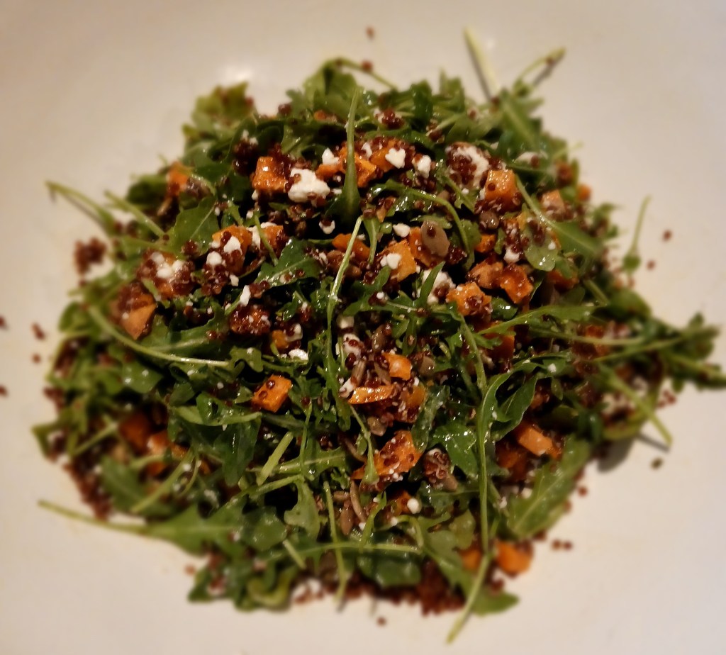 - 1-2 cups diced and roasted sweet potatoes (toss with olive oil and salt, roast at 400 degrees for 15-25 minutes until starting to brown)